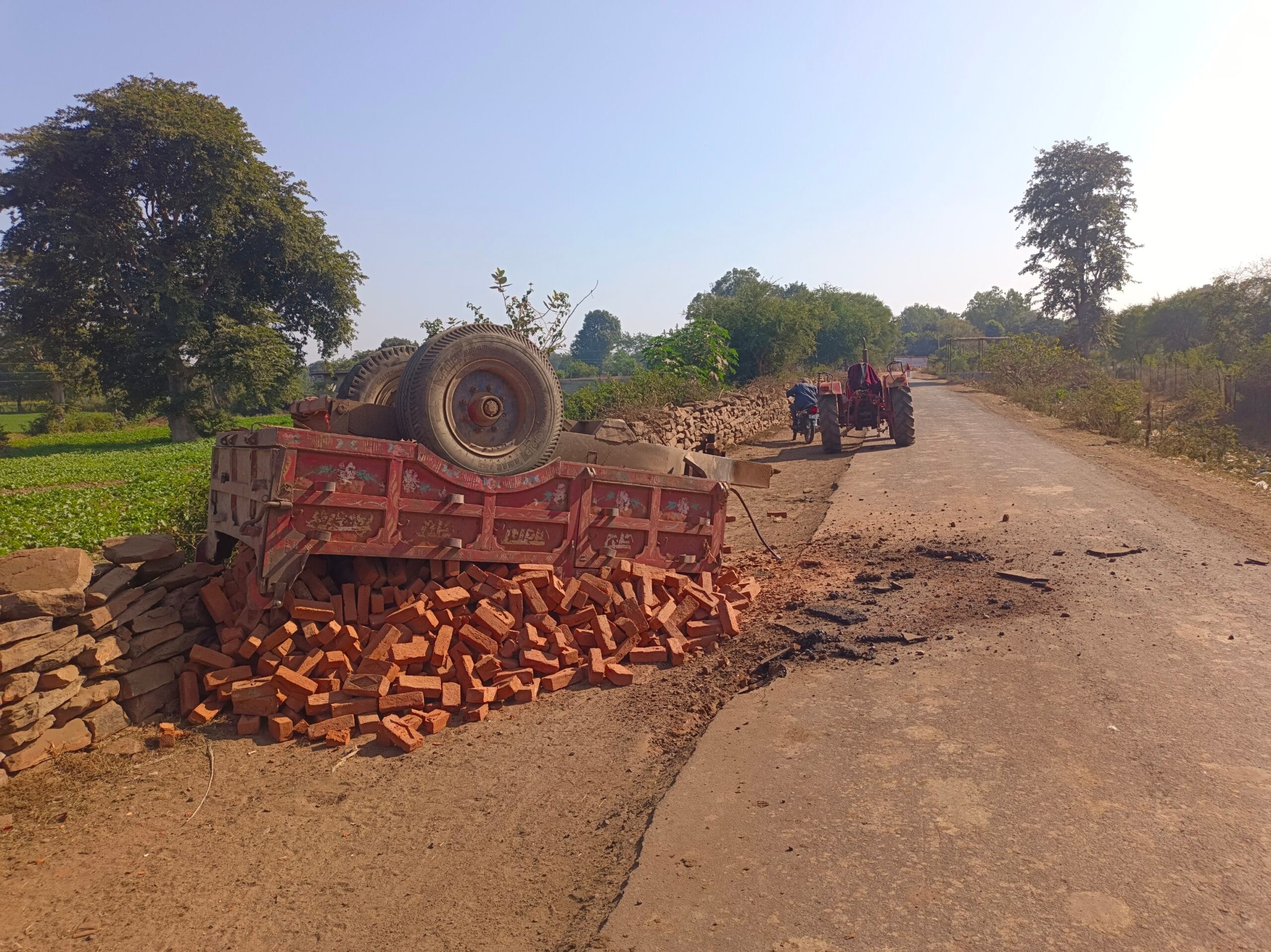 मड़ियादो–कलकुआ मार्ग पर ईंट से भरी ट्राली पलटी, दो मजदूर घायल