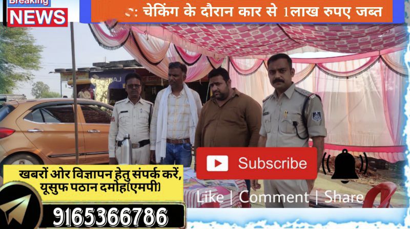 हटा एसडीओपी नीतेश पटेल के नेतृत्व में कुम्हारी पुलिस और एसएसटी टीम ने चेकिंग के दौरान कुम्हारी मे कार से 1 लाख रुपए ज़ब्त किये,जांच जारी दमोह।एमपी आदर्श आचार संहिता…