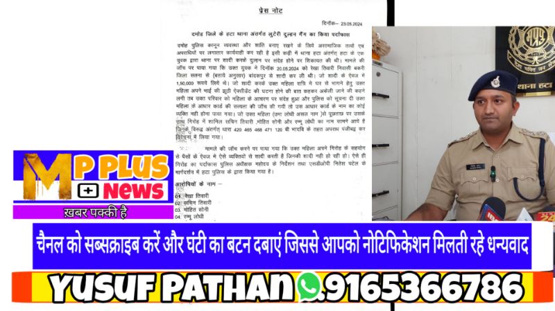 लुटेरी दुल्हन गैंग का पर्दाफास, हटा पुलिस ने किया खुलासा हटा,दमोह (एमपी) अविवाहित युवकों की शादी कराने का झांसा देने वाले गिरोह का हटा पुलिस द्वारा पर्दाफाश कर कारवाई की…